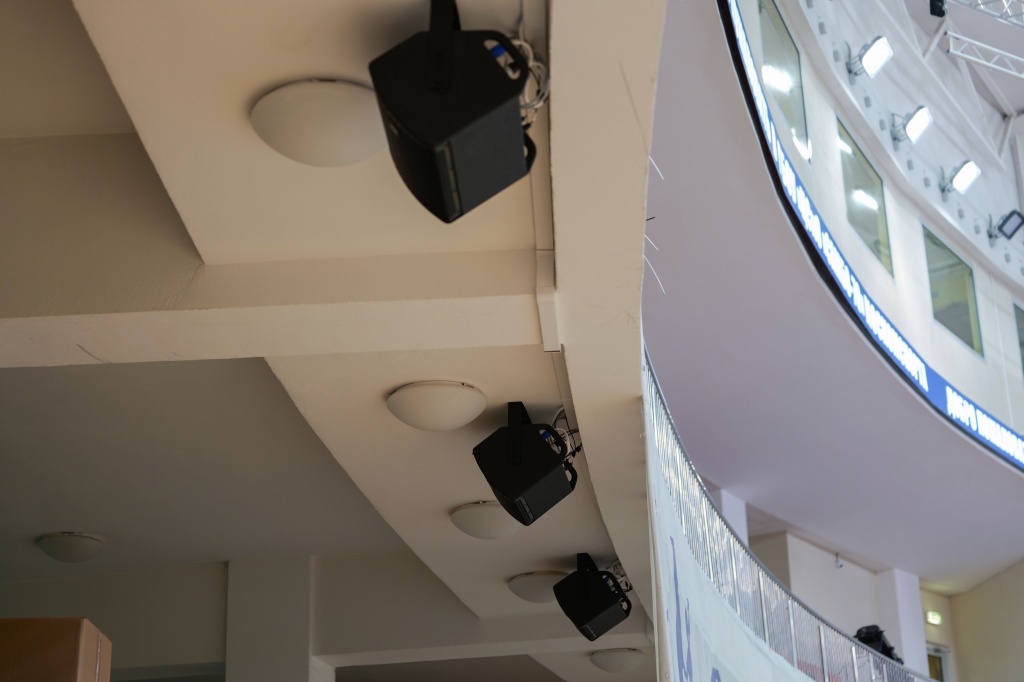 В результате разработанной схемы каждая зона арены обеспечена качественным звуком, и зрители имеют возможность слушать в частотном диапазоне музыкальный контент в высоком качестве. Плюс к этому в помещении обеспечена разборчивость речи самого высокого уровня, устраивающего даже взыскательные прокатные компании, предъявляющие к этому параметру звукоусиления повышенные требования.