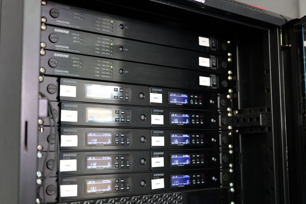 Управление звуком, видеокамерами и освещением арены осуществляется с пультов, инсталлированных в аппаратной на втором этаже помещения.