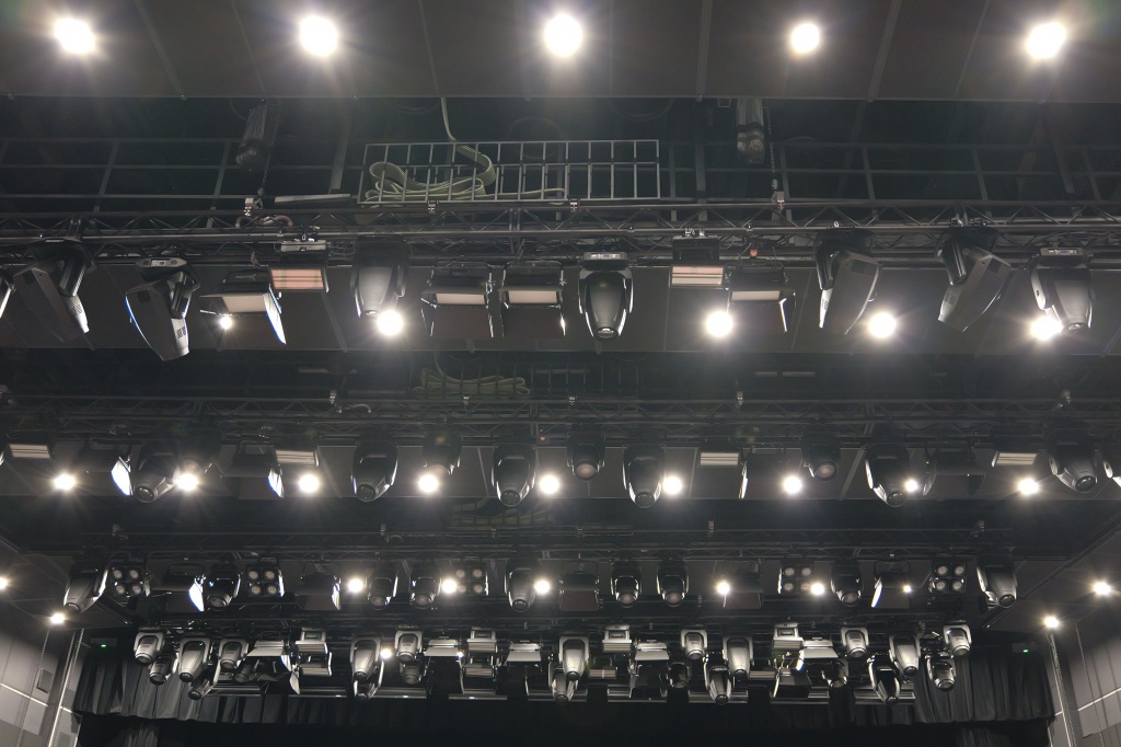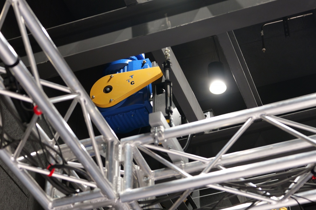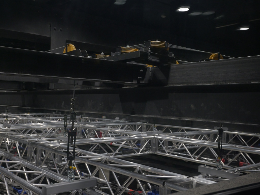 Система верхней механизации включает в себя шесть софитных балок, каждая из которых крепится на четыре цепных лебедки. На софитных балках установлена система постановочного освещения, включающая в себя 167 световых приборов Elation под управлением пульта Obsidian NX4.
