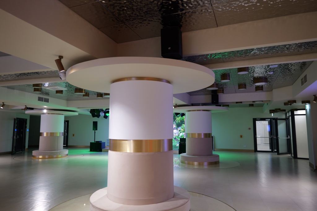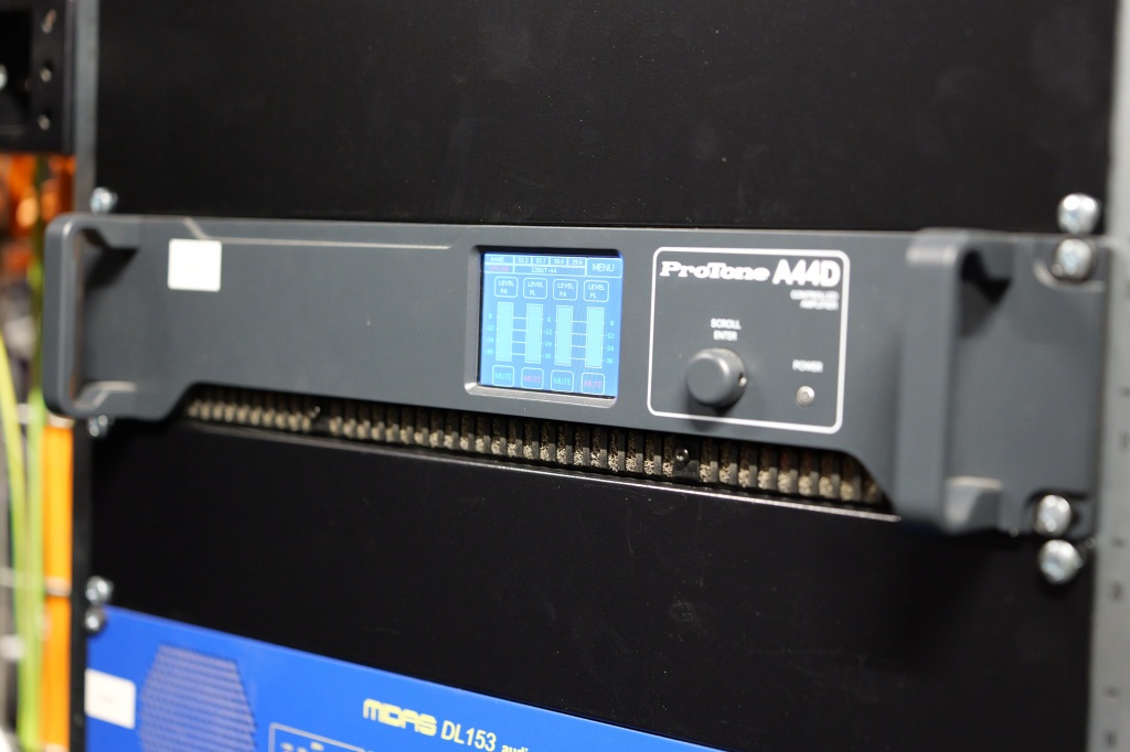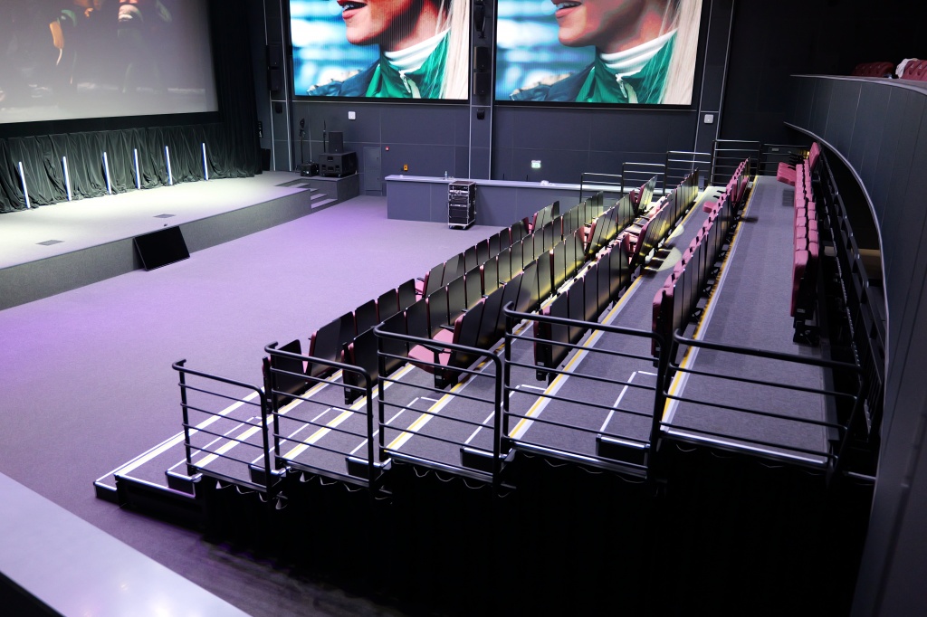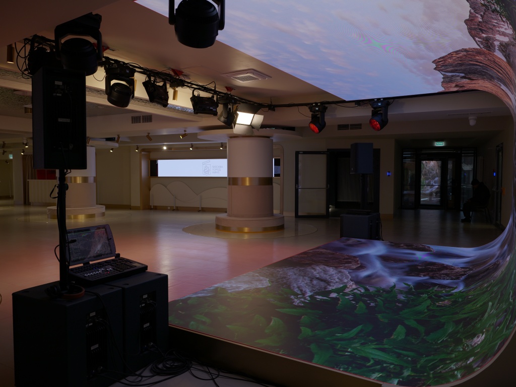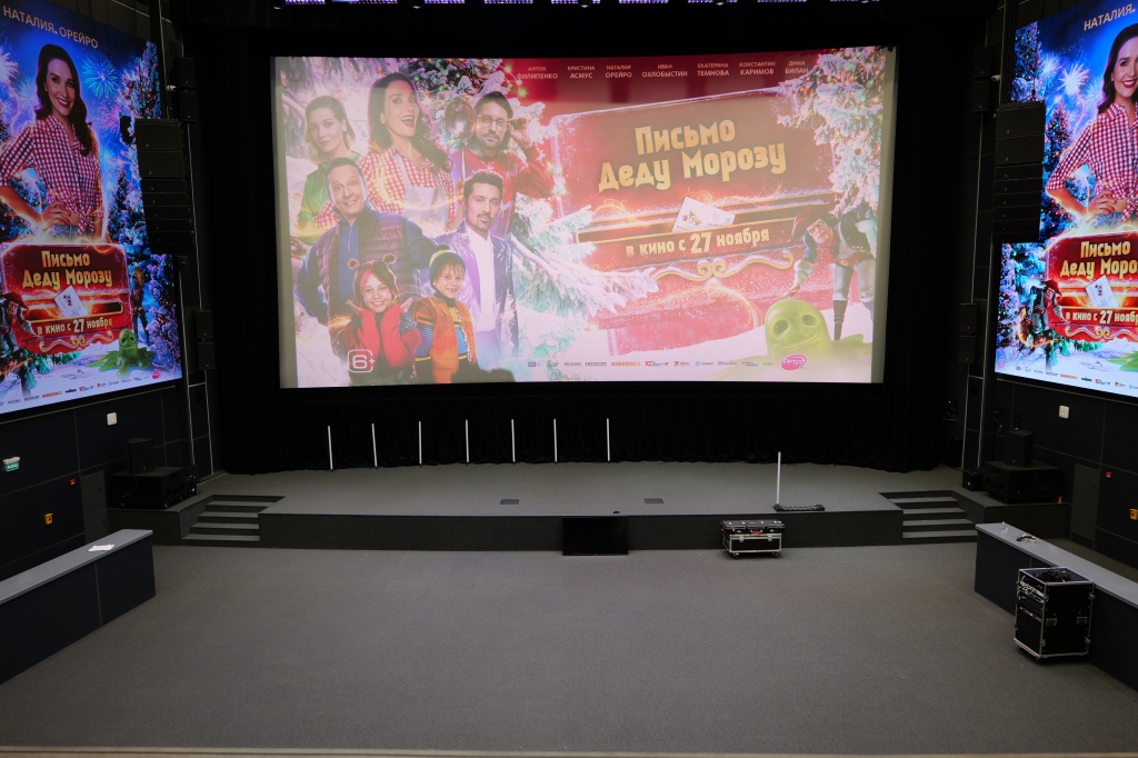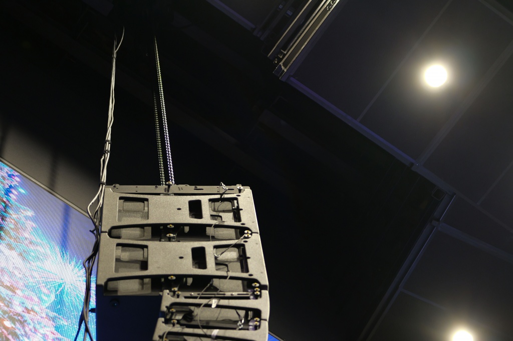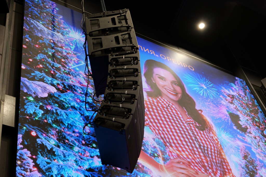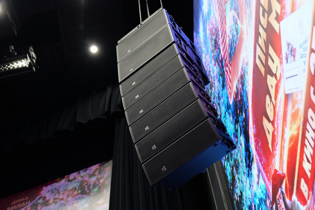Пространство ШФЗ, кроме кинопросмотра, можно трансформировать под мероприятия различного форматов, включая концертные номера. Звуковое сопровождение в таких случаях обеспечивают линейные массивы Protone, подвешенные на лебедках.