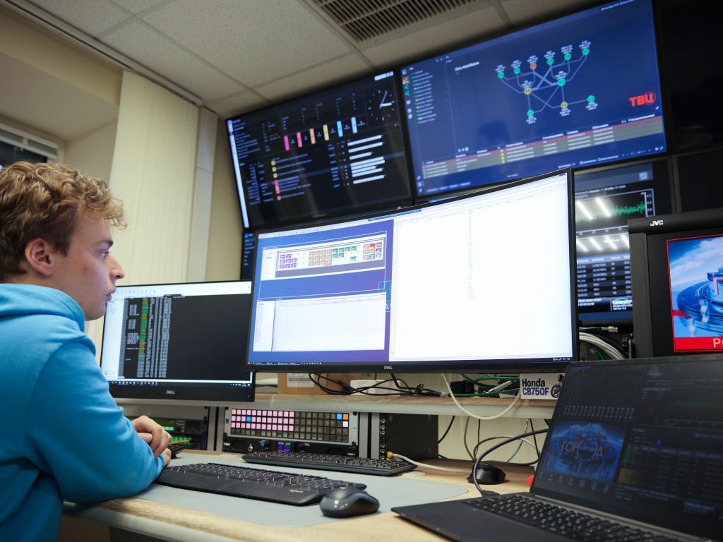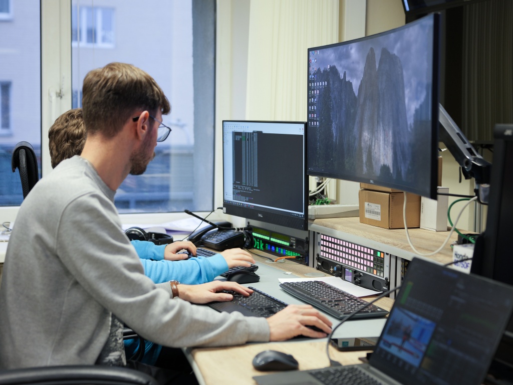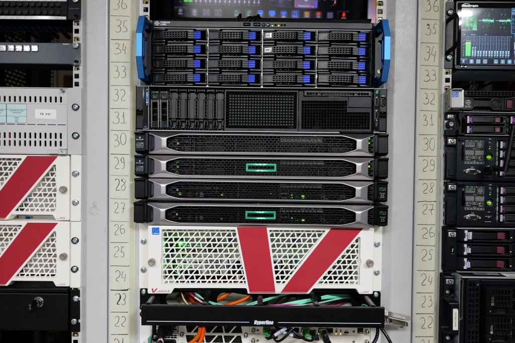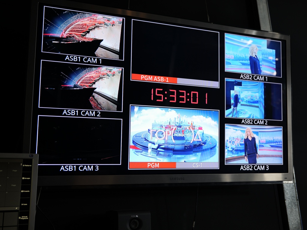 Установлена центральная матрица коммутации по топологии Leaf-Spine (4+4), благодаря чему в студии ТВЦ построена распределенная сеть. Внедрена система оркестрации и управления центральной матрицей, включая панели управления на рабочих местах. Интегрированы системы преобразования, мониторинга и инструментального контроля видео- и аудиосигналов